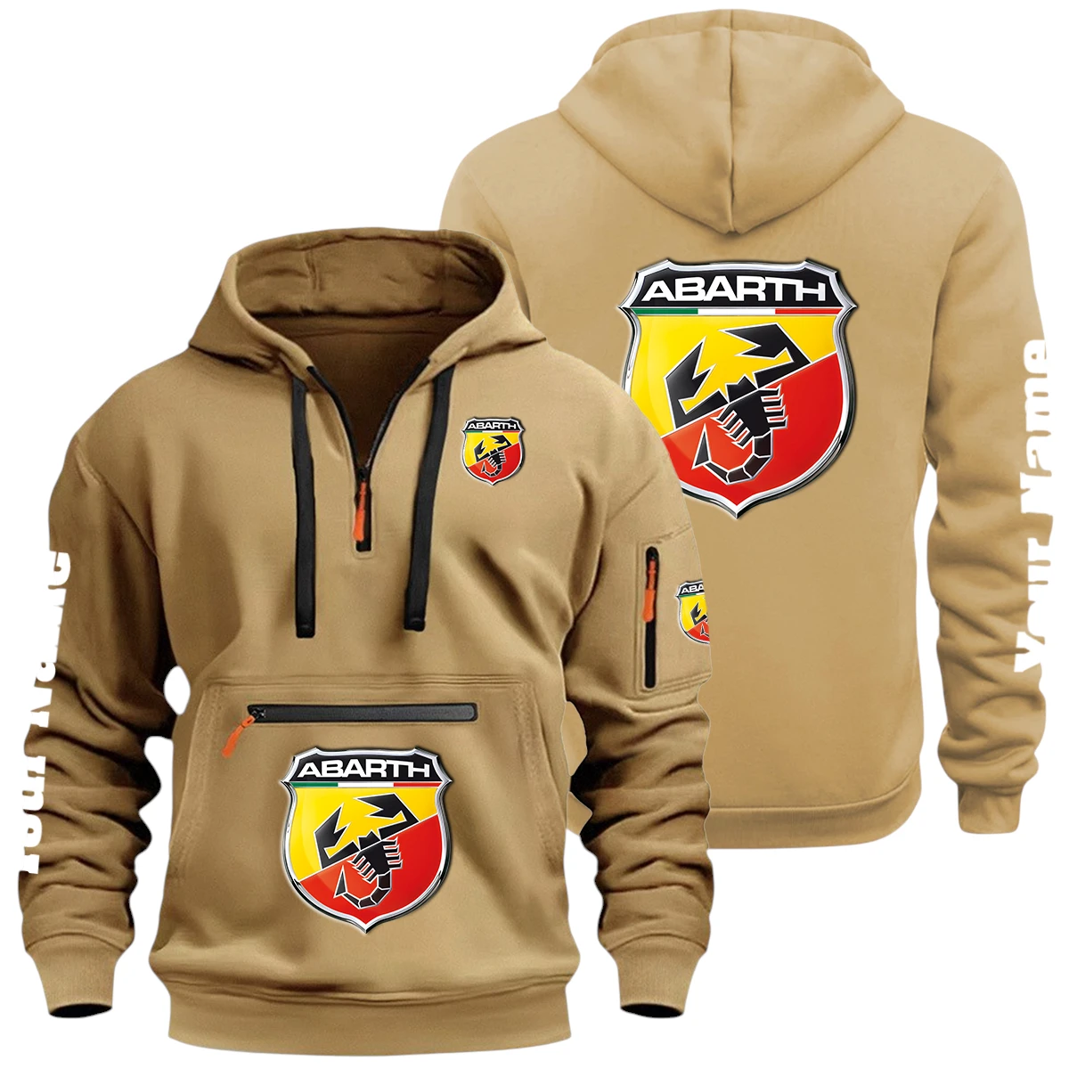 Abarth Half Zip Hoodie Multi Zipper Pocket Custom Name