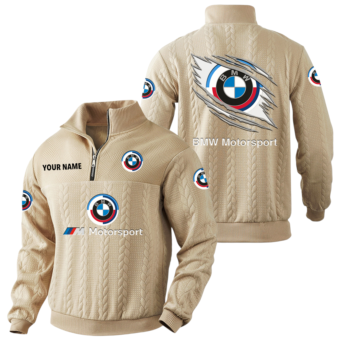 BMW M Motorsport Racing Quarter-Zip Sweatshirt Stand Collar Custom Text