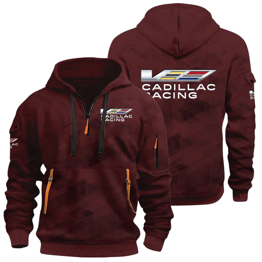 Cadillac Racing Half Zip Hoodie All Over Prints Multi Pockets Custom Name Gift For Fan