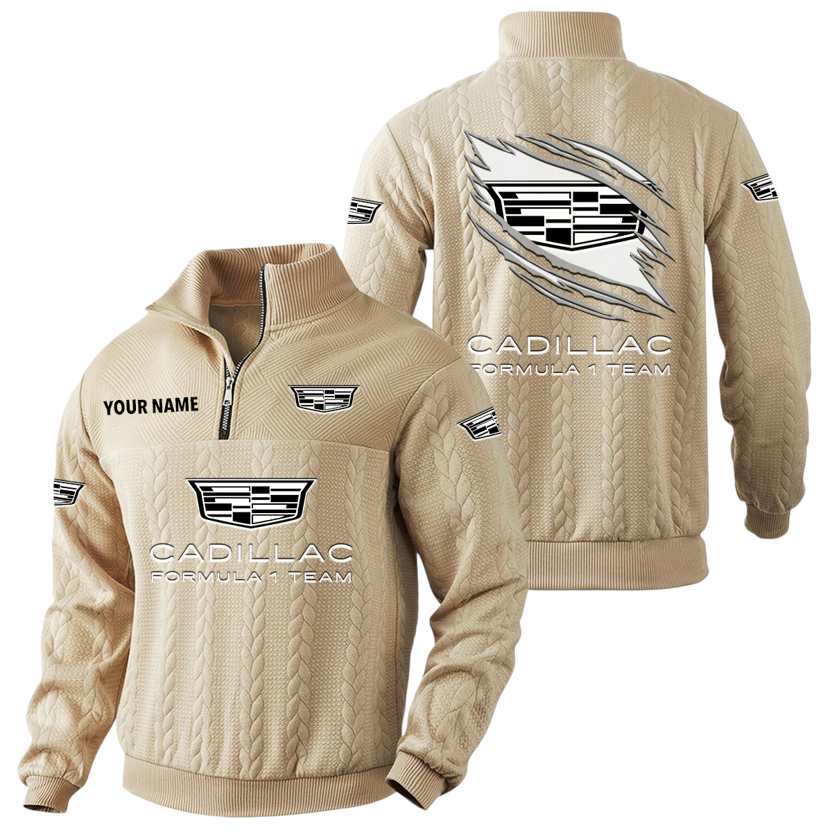 Cadillac Racing Quarter-Zip Sweatshirt Stand Collar Custom Text