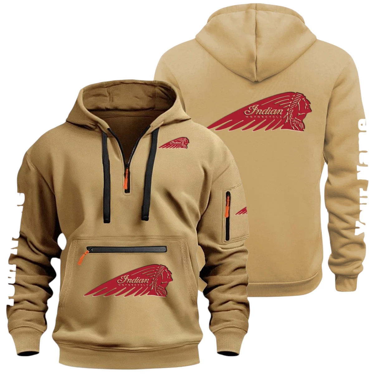 Indian Motorcycle Half Zip Hoodie Multi Zipper Pocket Custom Name