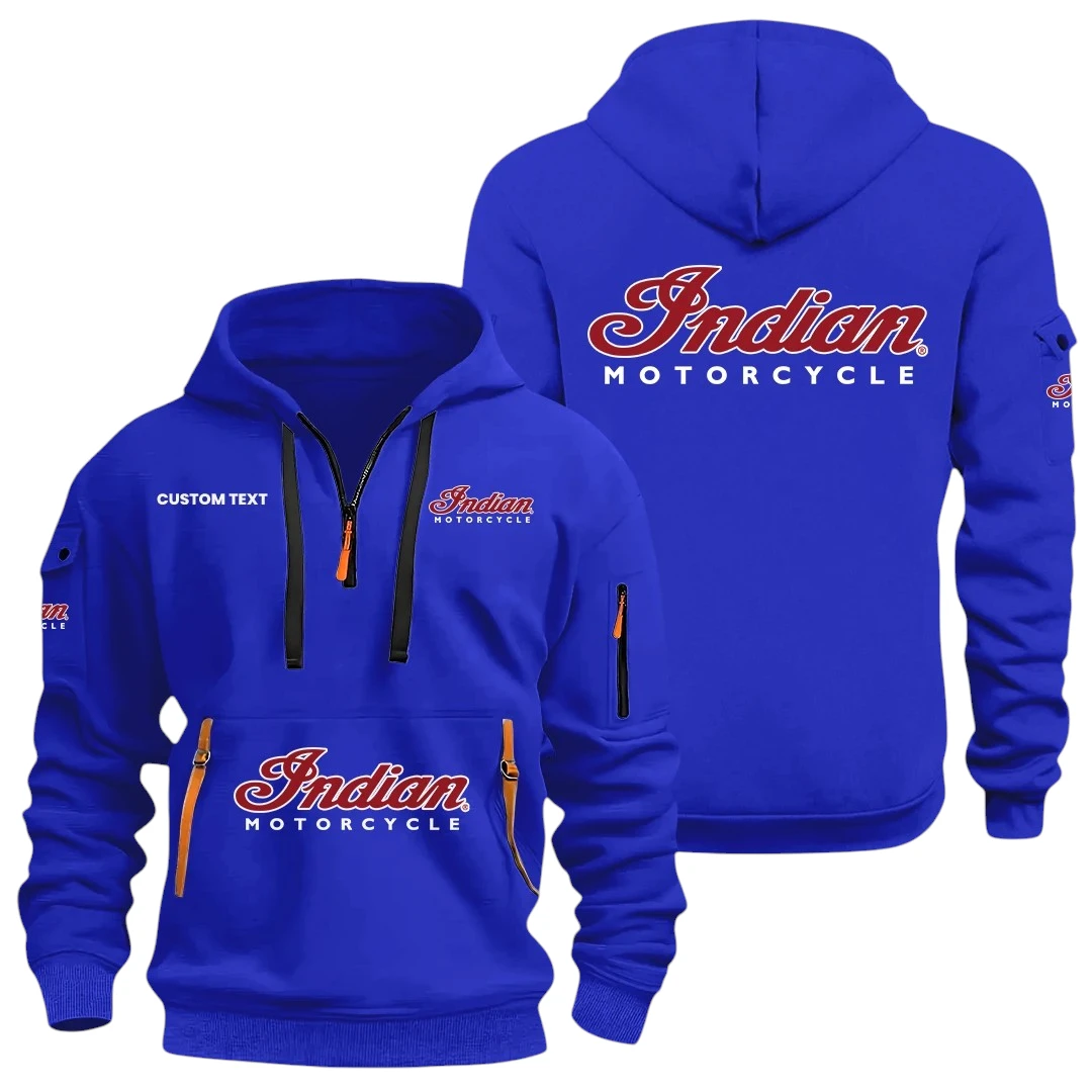 Indian Motorcycle Half Zip Hoodie, Sports Hooded Multi-Pocket, Custom Name HIDI050325Y25QZ2HINM