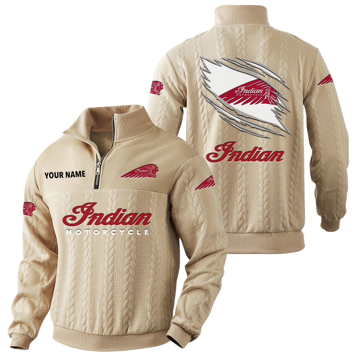 Indian Motorcycle Quarter-Zip Sweatshirt Stand Collar Custom Text