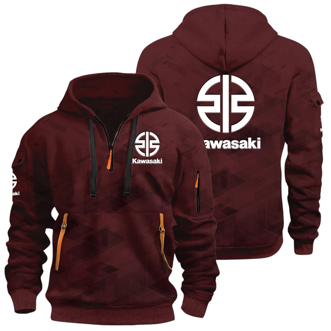 Kawasaki Motors Half Zip Hoodie All Over Prints Multi Pockets Custom Name Gift For Fan