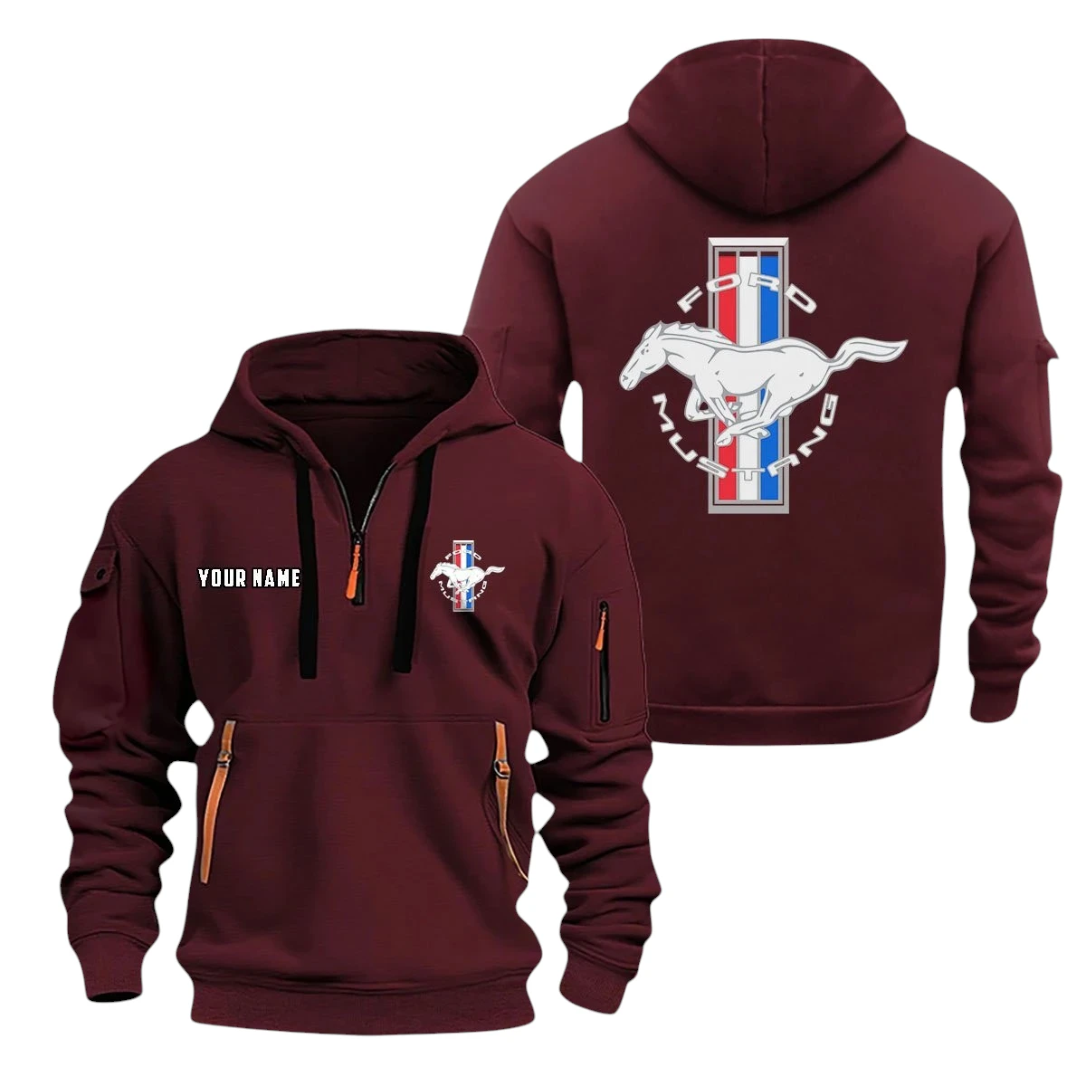 Mustang Half Zip Hoodie, Sports Hooded Multi-Pocket, Custom Name TN090325Y25QZ2HCT8MUS