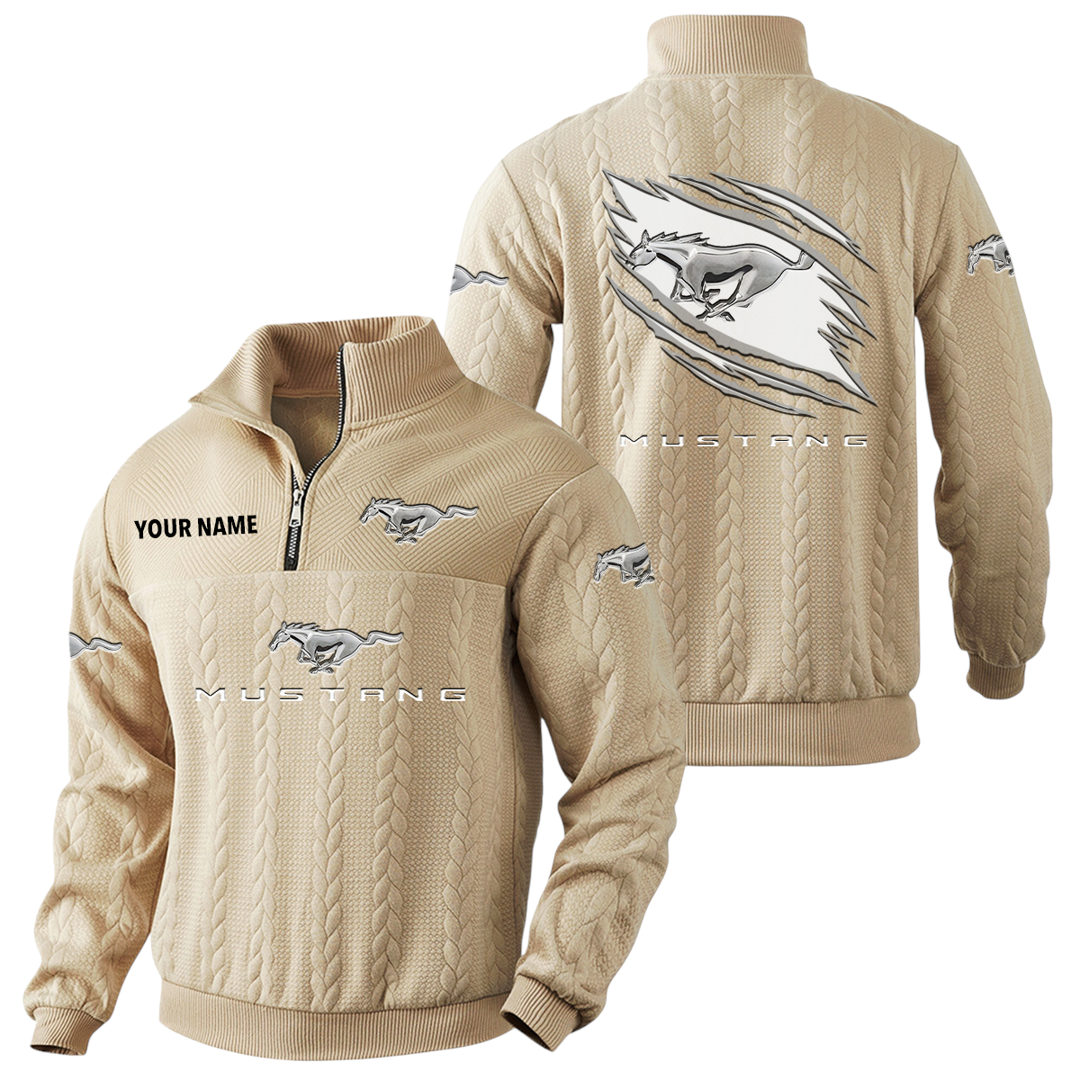 Mustang Quarter-Zip Sweatshirt Stand Collar Custom Text