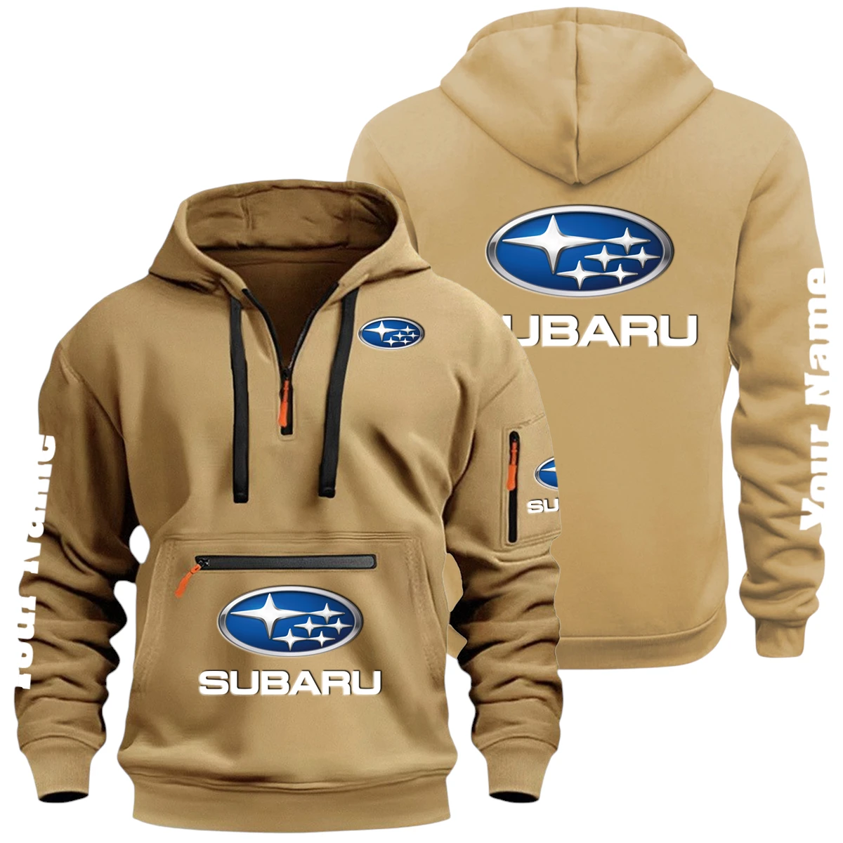 Subaru Half Zip Hoodie Multi Zipper Pocket Custom Name